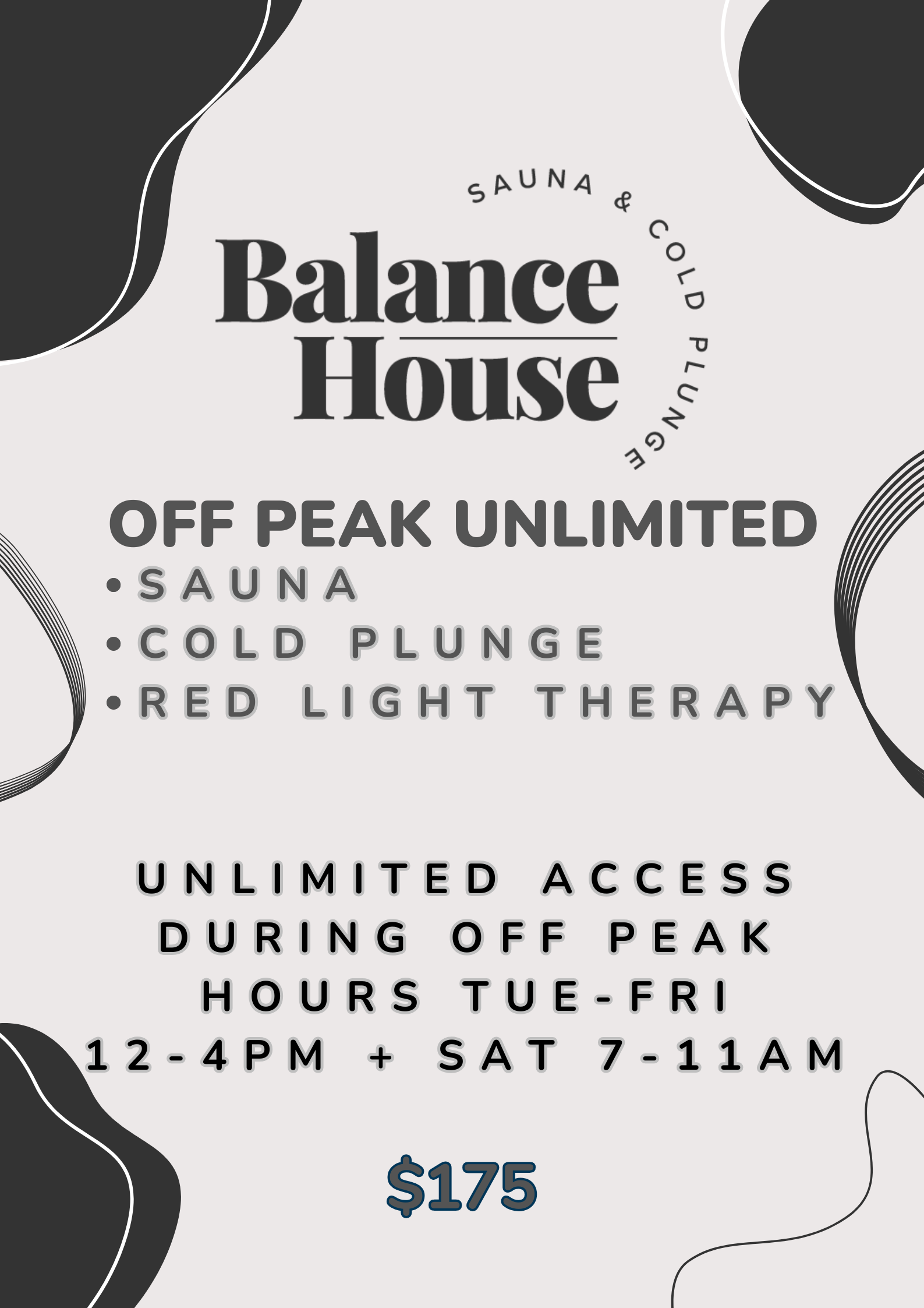 Unlimited access - includes traditional sauna, cold plunge and red light therapy